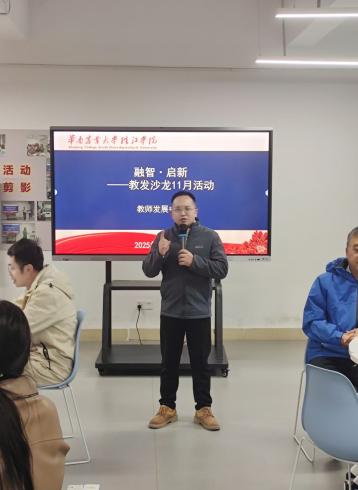 为破解教学与科研协同发展的核心命题,助力青年教师快速成长,11 月20日,教师发展中心在图书馆二楼举办主题为“融智・启新” 教发沙龙活动。本次活动邀请大湾区影视学院董丛斌教授、经济管理学院副教授钟德做主题分享。学校党委书记赵凤亲临现场指导,各学院教研室主任、青年教师代表参加活动,活动由教师发展中心主任欧阳建超支持。