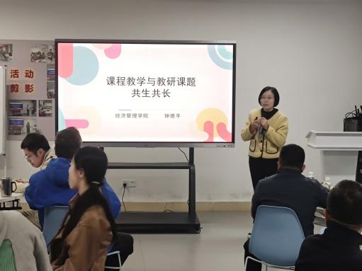 经济管理学院副教授钟德平围绕 “课程教学与教研课题共建共生” 展开分享,以《国际物流》课程建设为例,呈现了教科研深度融合的生动实践。他用 “指南针” 与 “落地器” 的精妙比喻,点明了教研课题与课程教学的关系:教研课题为课程教学指明方向,课程教学则让教研成果落地生根,二者在实施过程中形成 “教研驱动教学、教学反哺教研” 的良性循环,让 “理论种子” 在课程建设中结出 “实践硕果”。